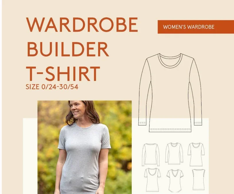Using the Wardrobe By Me: T‑Shirt Builder pattern, you’ll create two beautifully finished T‑shirts, each in a different knit fabric base — such as cotton jersey, viscose jersey, rib knits, modal blends, or interlock — giving you real experience with how various knits behave and how to handle them with confidence.